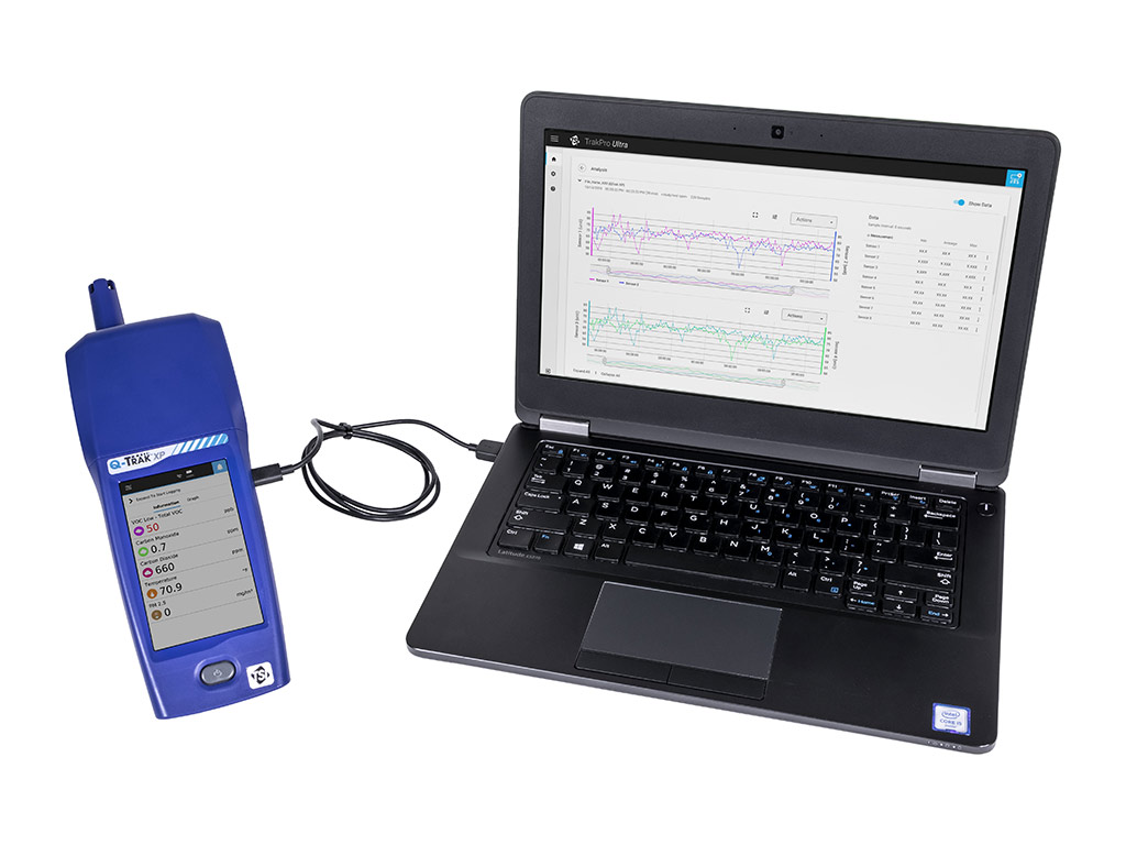 Q-Trak XP™ Indoor Air Quality Monitor can perform a wide range of indoor air quality assessments and data logging. The powerful, compact multi-sensor module supports up to 6 selectable gas sensors while simultaneously measuring particle mass concentration, particle concentration, temperature, relative humidity. Standard IAQ calculations including wet bulb, dew point and percent of outdoor air mix are also supported.