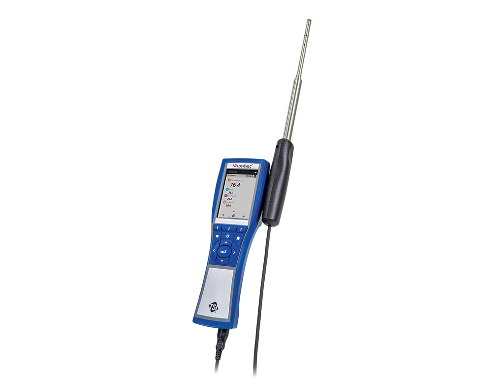 L'instrument de mesure de la ventilation VelociCalc® modèle 9600 est conçu pour fonctionner avec une large gamme de sondes enfichables pour mesurer la vitesse de l'air, la température, l'humidité relative, le CO et le CO2. Sa conception ergonomique comprend un support de sonde et des aimants intégrés permettant de le fixer sur des conduits exposés ou d'autres surfaces métalliques pour une utilisation mains libres. Le modèle 9600 comprend un flux de travail intégré pour calculer le pourcentage d'air extérieur utilisé pour déterminer l'efficacité de la ventilation dans un bâtiment ou une pièce lorsqu'il est utilisé avec une sonde QAI.
