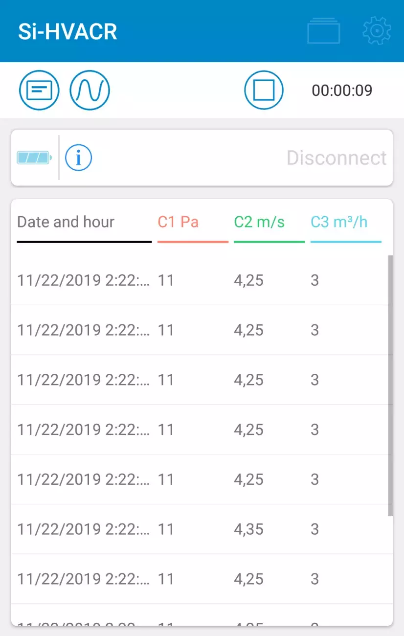 Si-HVACR Measurement MobileApp relaie les mesures suivantes :