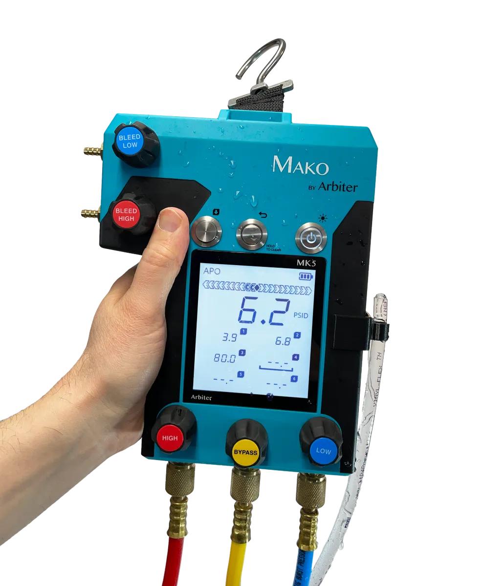 L'ensemble Mako Master Pack comprend VOTRE CHOIX de kit de test MK2, MK3 ou MK5, VOTRE CHOIX de kit de raccords QTSWSAH ou QTSWSBH dans un support, une vanne de purge/compensation BV101, un tube de visée articulé ST201, un raccord MKYF1 "Y" (MK5 uniquement), WV100 petite valve, WV106 poignée large et WV101 grande valve sur la poignée clés pour valve à bille, clé à poignée manquante universelle WV105, bouchons en plastique SHP1 1/4", bouchons en plastique SHP8 1/2", bouchons en plastique SHP12 3/4" , des capuchons en plastique G2, un tournevis réversible et le boîtier MKSC20.