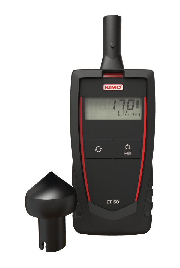 Le tachymètre portable CT 50 Kimo offre deux modes de fonctionnement ; il permet de mesurer la vitesse d’une machine soit par contact direct, soit en mode optique, sans contact.