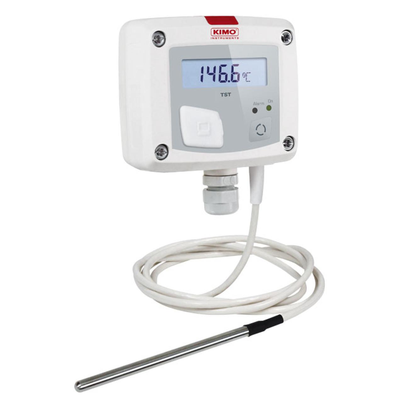 Le thermostat TST Kimo offre une gamme de mesure de 0 à +50 °C pour le modèle ambiant, -20 à +80 °C pour le modèle arrière, et -100 à +400 °C pour le modèle avec bornier.